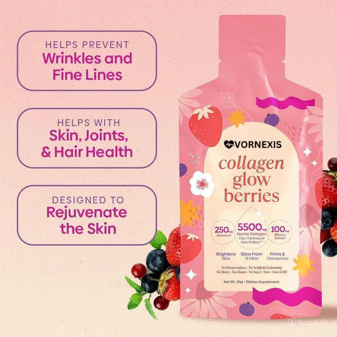 Our Collagen Glow Berries are designed to rejuvenate the skin from within, through skin barrier reparation, skin moisturizing and firming.