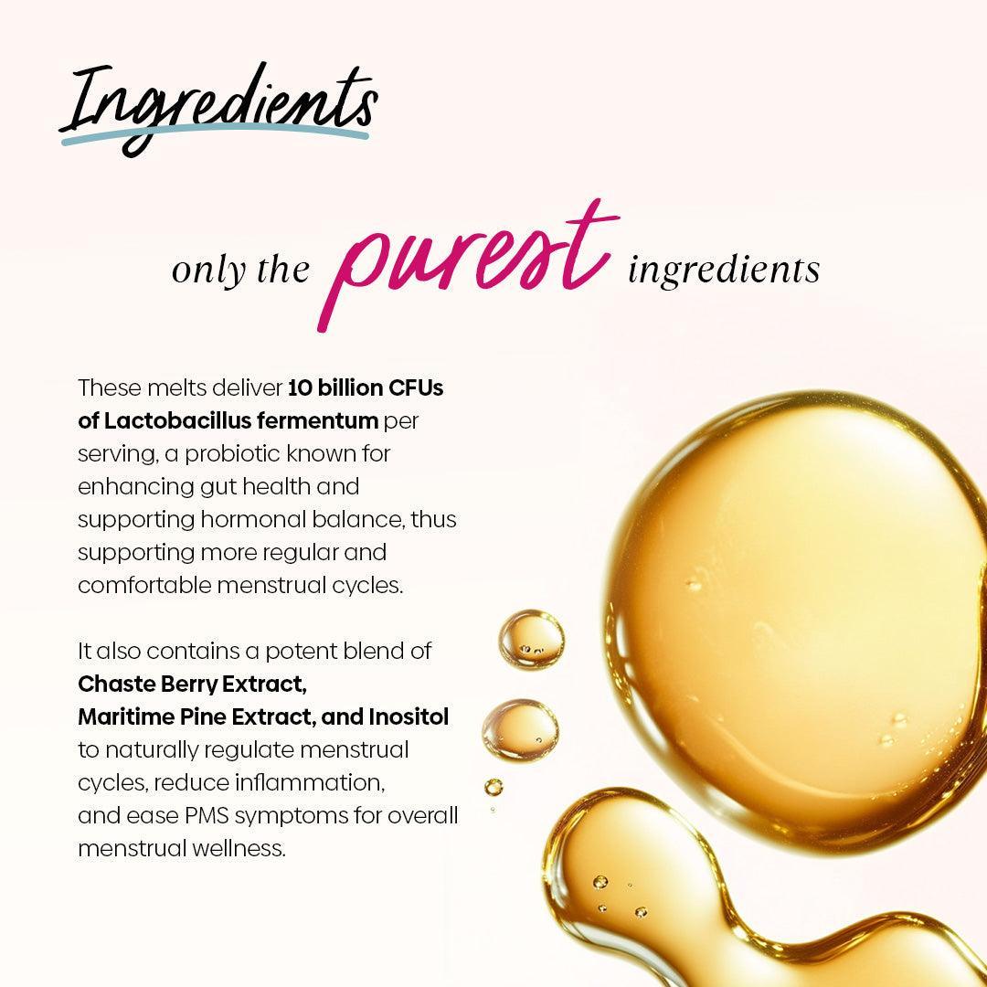 - Proprietary Inositol Blend (65mg) - Regulates cycles and alleviates PMS