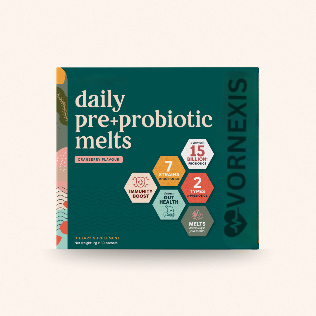 Embark on your journey towards optimal gut health with our Daily Pre+Probiotic Melts. Unlock the potential of a healthier gut and embrace a life free from digestive discomfort!