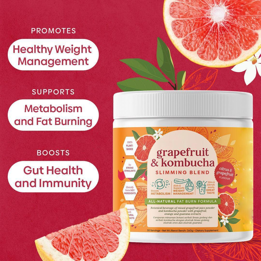 Made with carefully selected ingredients,Grapefruit & Kombucha Slimming Blendsupports your weight loss journey while improving digestion and overall gut health
