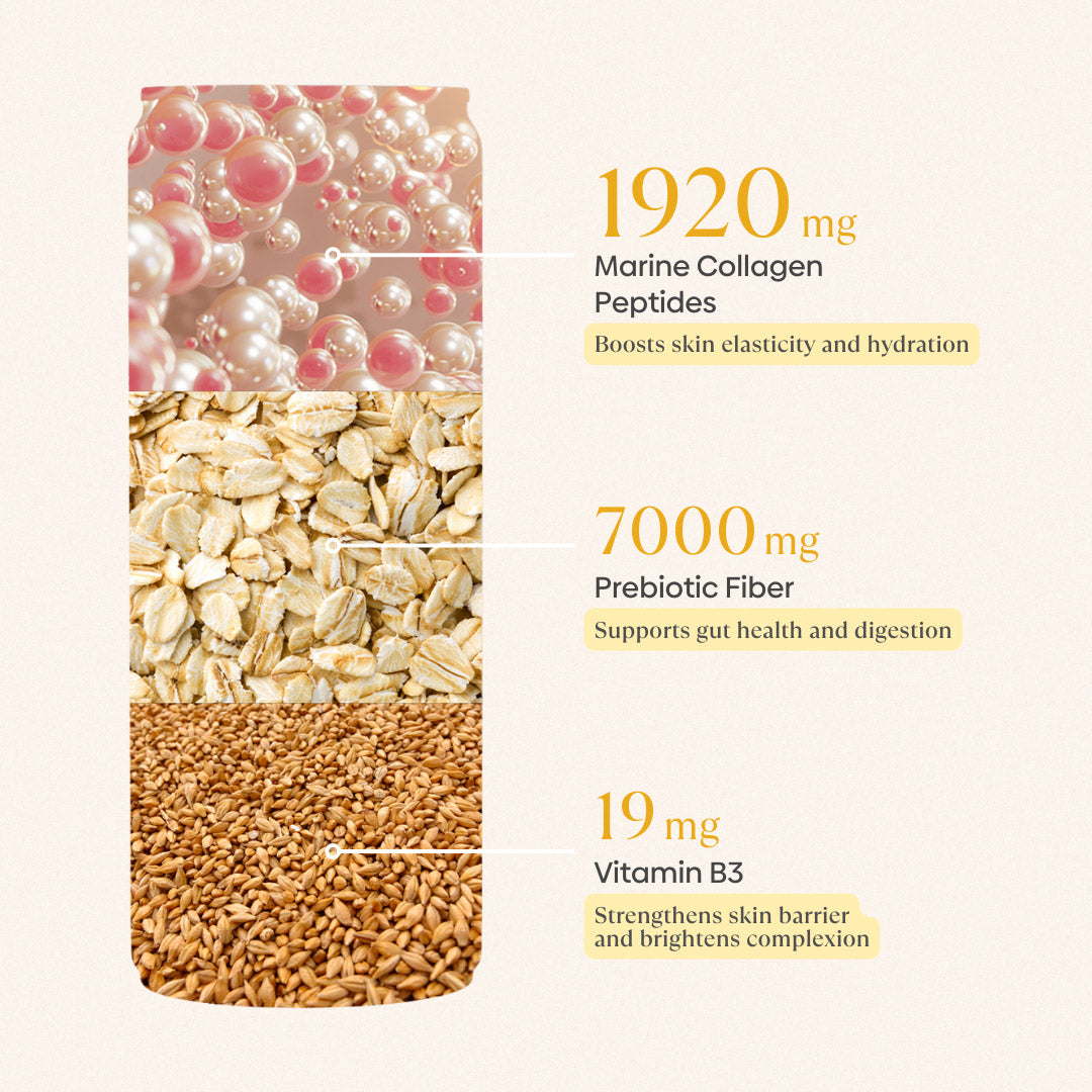 With real Aloe vera pulps to enhance texture, and the addition of 19mg of Vitamin B3 and 7000mg of dietary fiber, this drink not only boosts skin health by promoting a clear and vibrant complexion but also supports gut health by nourishing beneficial gut bacteria and aiding in digestion. Enjoy a revitalizing drink that's better than soda and packed with benefits for your skin and gut!